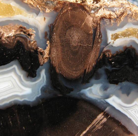 agate has filled in the area between the woody stem and