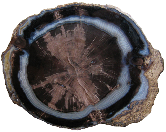 the tree. Bark is relatively rare in petrified wood specimens